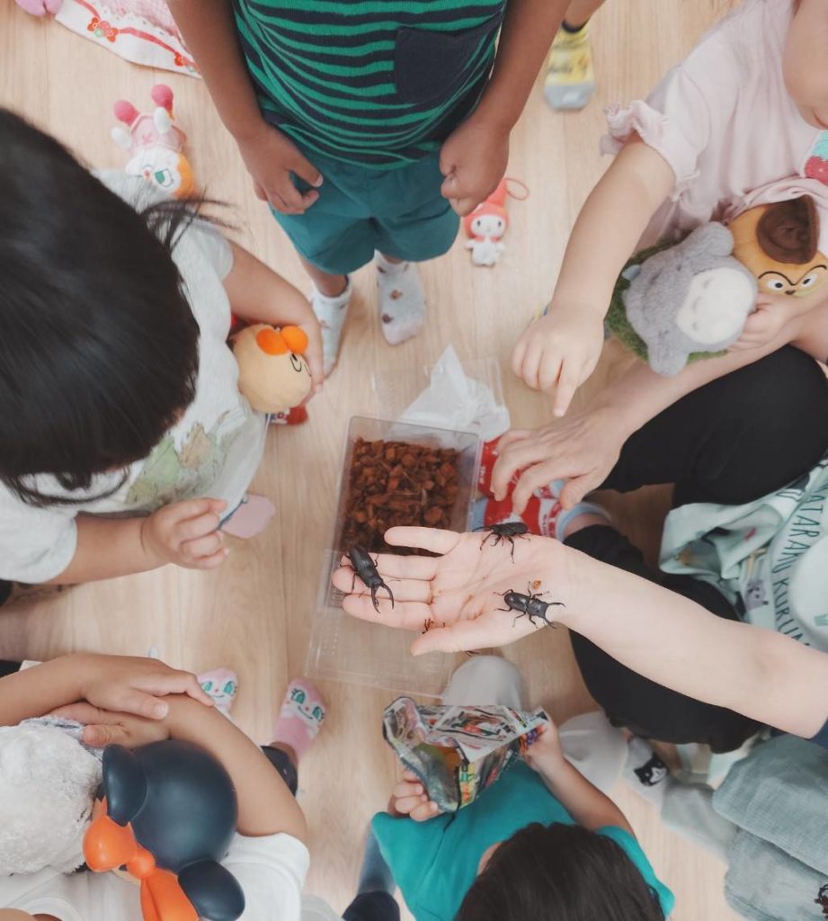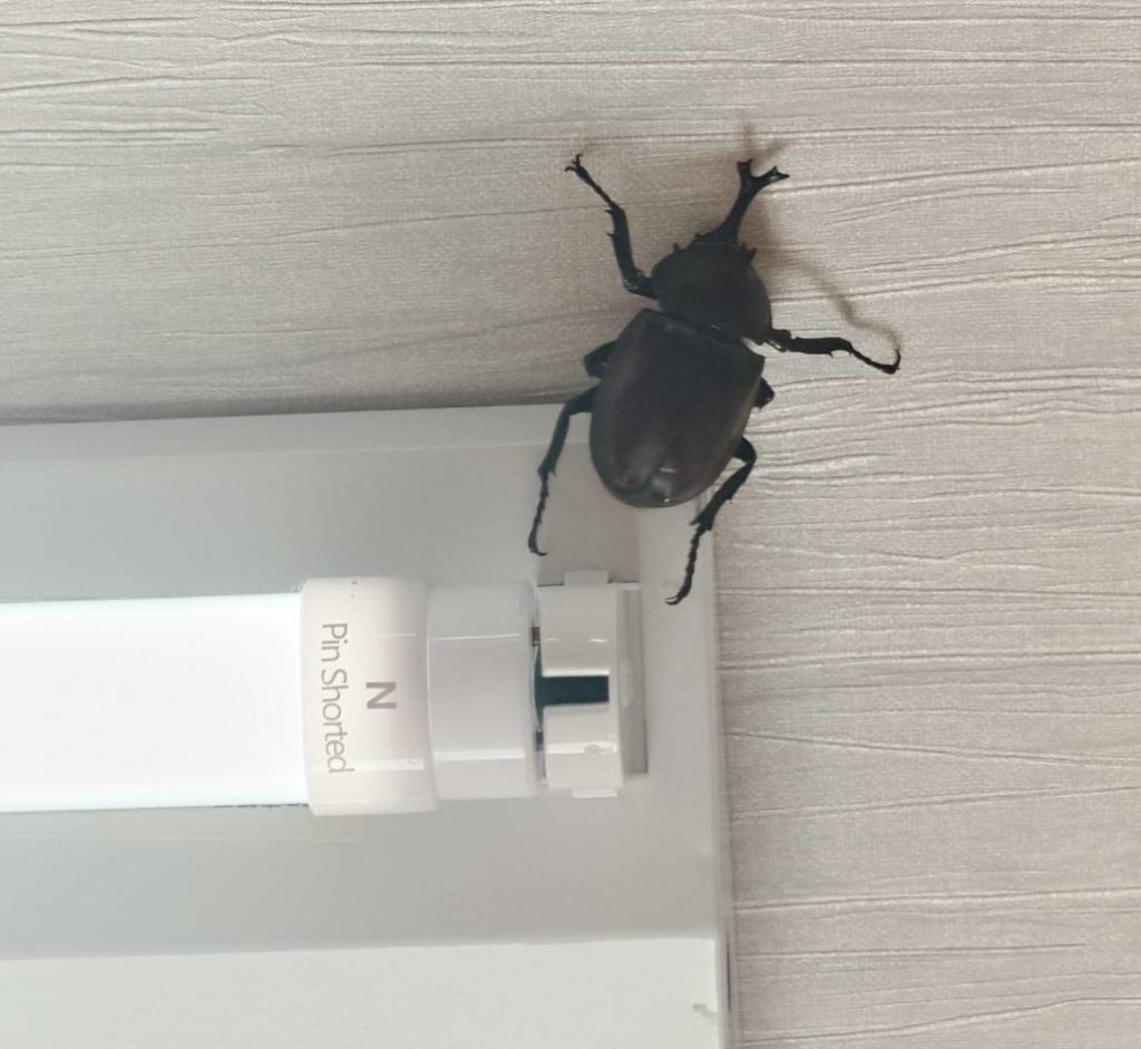 元気いっぱいのカブトムシくん。歩いていたら触れる子どもたちも飛んでしまったら大慌て!