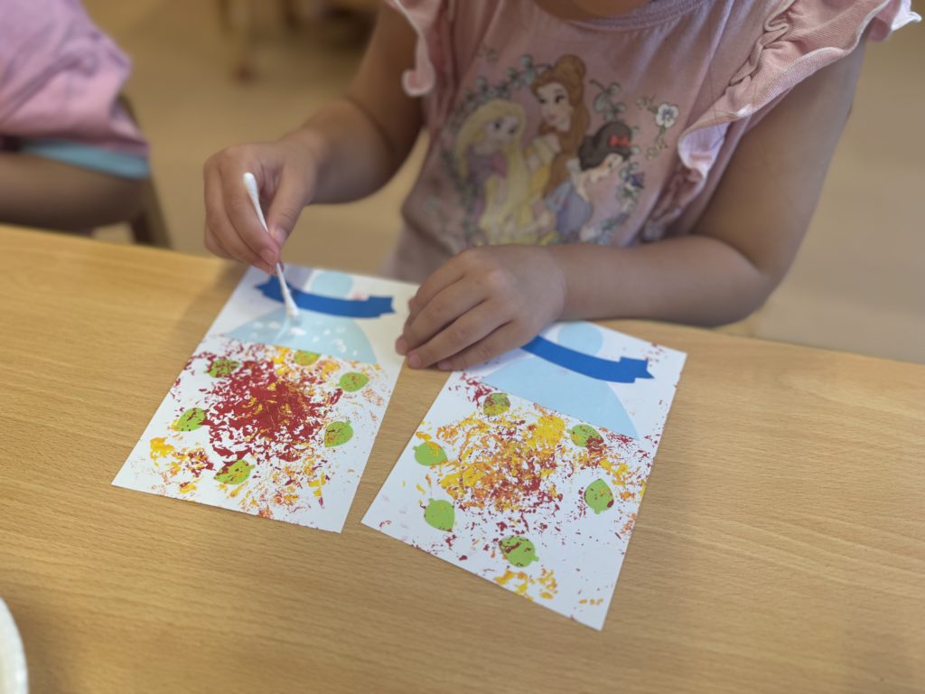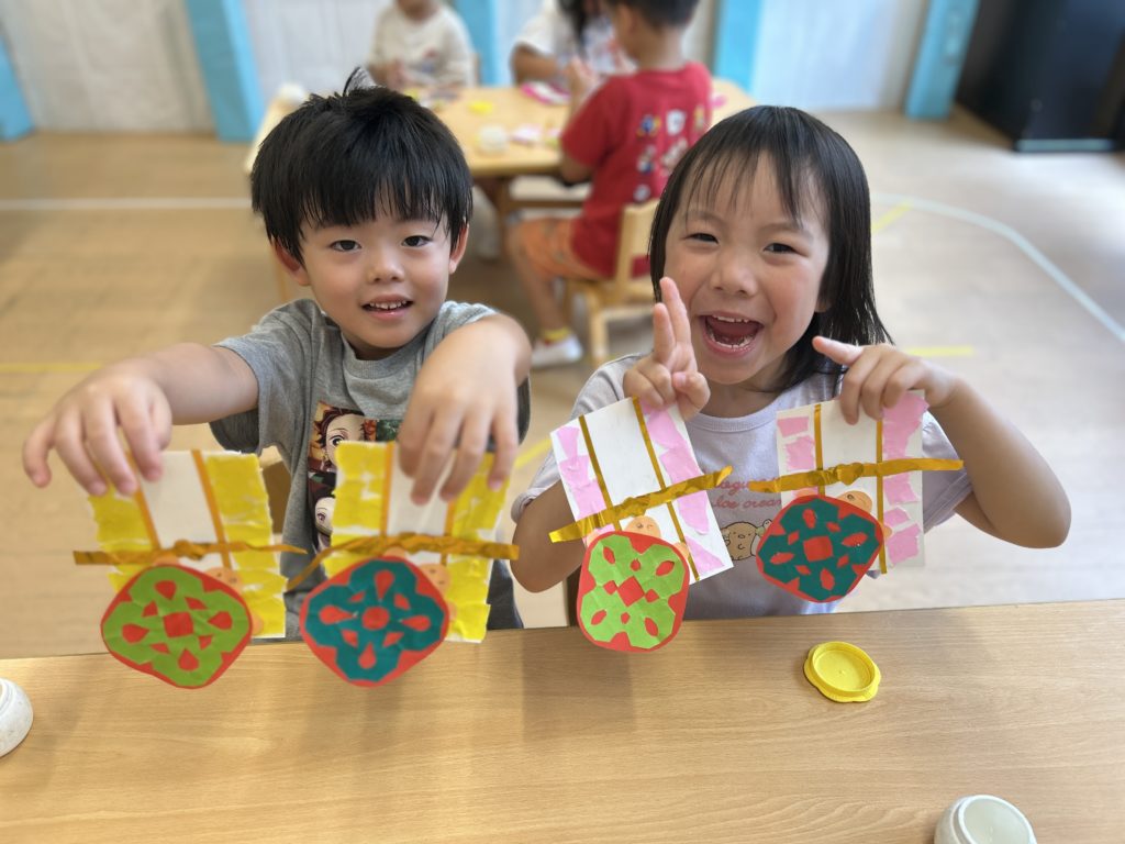 幼児組のお友だちはスタンプをしたり、貼ったり、描いたり…それぞれ気持ちを込めながら、じっくり取り組みました🌟