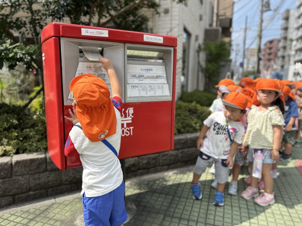 そして完成したハガキは近くのポストへ📮 自分の順番を今か今かと待つ、かわいい子どもたちです☺