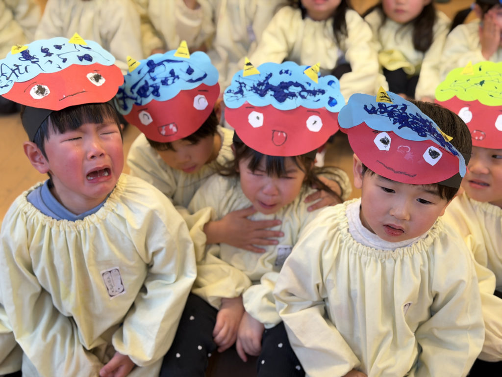 幼児組さんにはなんだか悪そうな鬼も…泣き虫鬼?怒りんぼ鬼?、それともいじわる鬼?