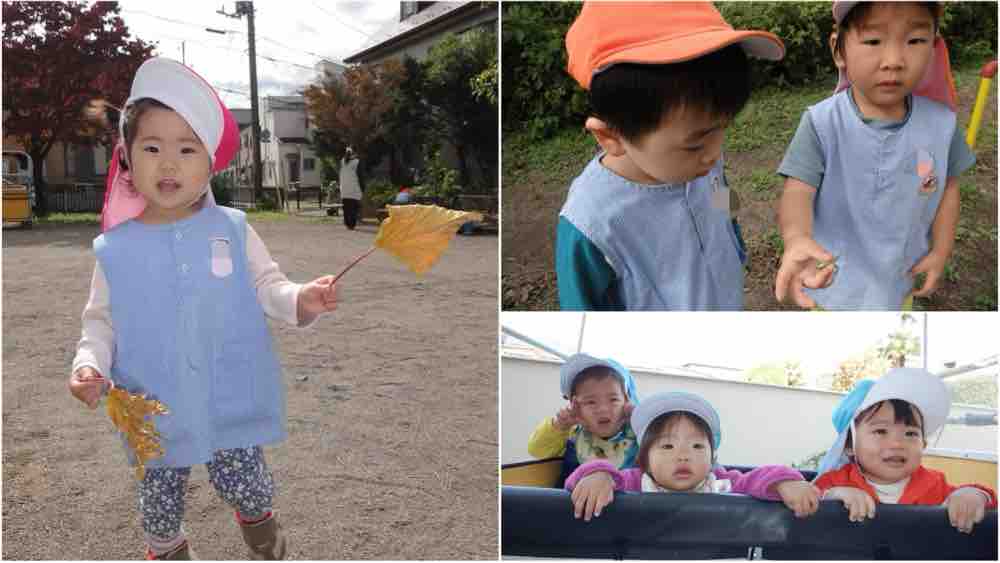 あひる組やすずめ組も公園で遊んでいます!大きな葉っぱを見つけたり、虫を見つけて観察したり触って見たりと秋の自然をたっぷり味わっています🍂