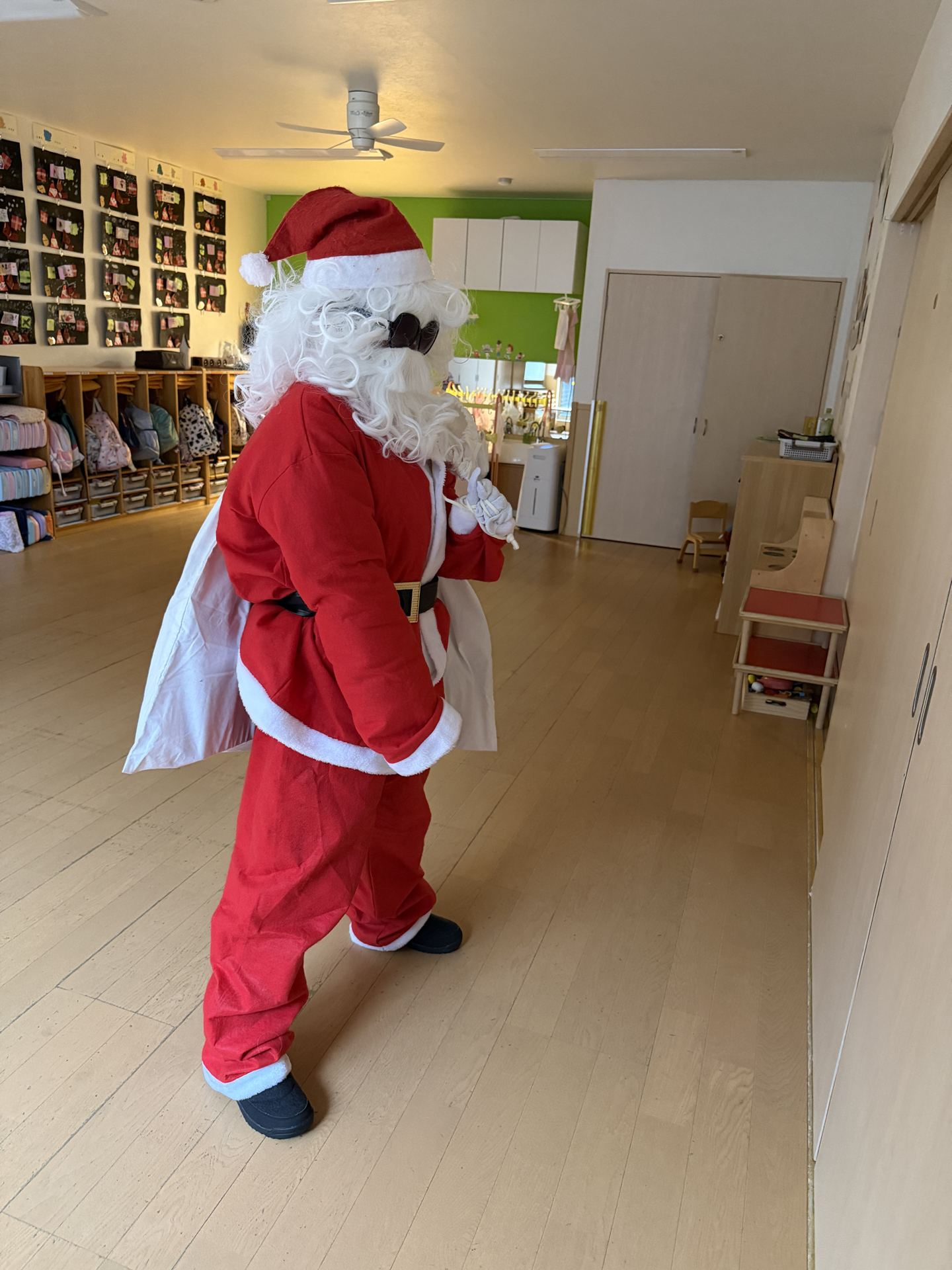 ⭐サンタさんようこそ⭐ - ハッピーメリークリスマス🎄 今日は待ちに待った一大イベント! 保育園では、「今日サンタさんが来てくれるかもっ⁉」と、朝からウキウキな子どもたち...クリスマス会を今か今かとそわそわ待っていました☺ 裏方、登場準備はバッチリ😎 登場は子ども達からの後ろから! いい意味で期待を裏切ってくれたサンタさんに大興奮な子どもたちでした💓 質問をしたり、一緒に写真を撮ったり、サンタさんにプレゼントを貰ったり...。 盛りだくさんなクリスマス会🎅 本物のサンタさん⁉⁉ に、ちょっと驚く